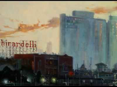What element of the composition did I go after . . . the sky. Yes it's true . . . that's San Francisco in the background. Twilight painting by ~ SCOTT GRABOWSKI